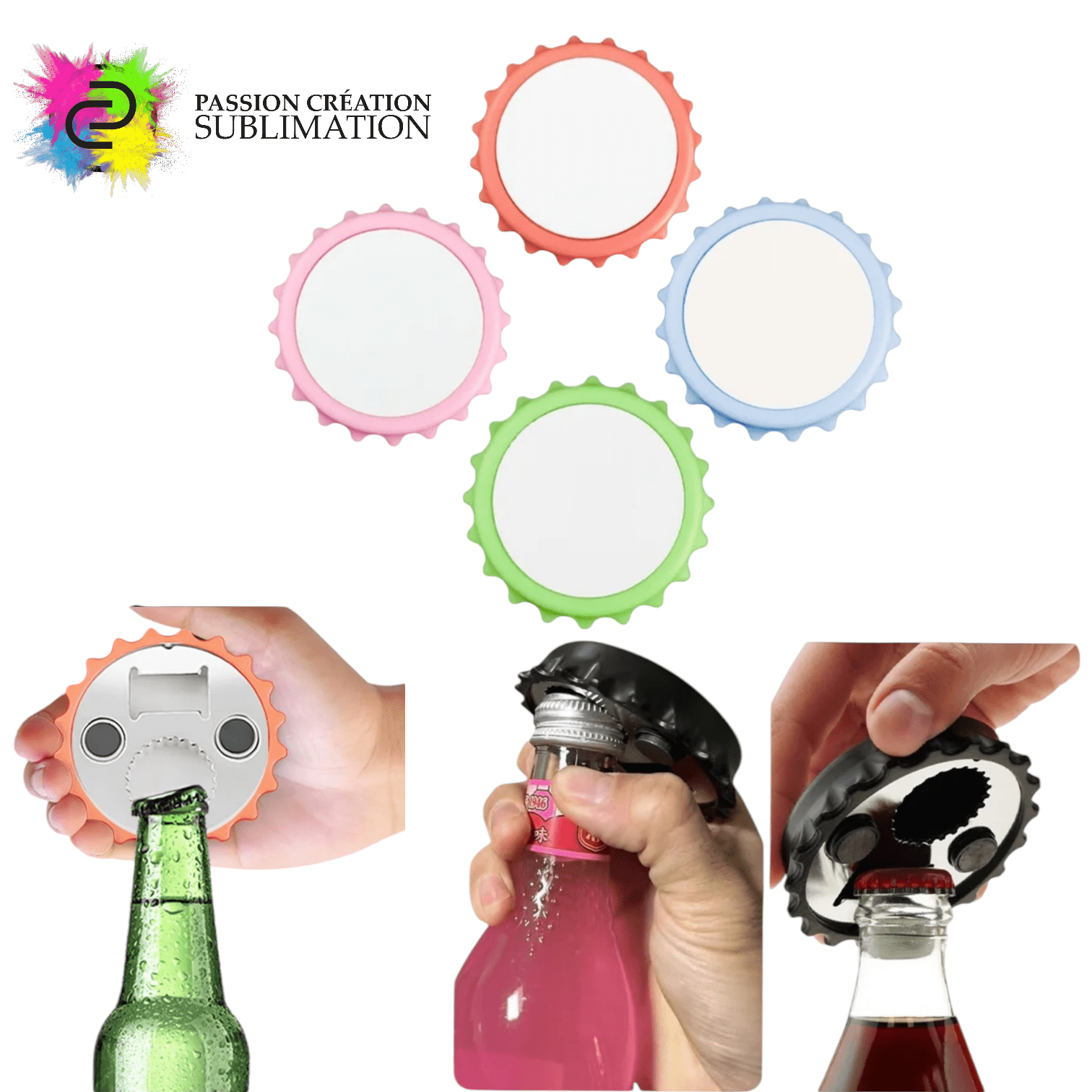 Décapsuleur magnétique 2/1, ce décapsuleur est conçu pour être personnalisé par sublimation et aimanté. Il peut-être disposé directement sur le frigidaire ou sur toute surface aimantée. De plus vous aurez un décapsuleur pour ouvrir vos bouteilles sous la main ainsi qu’une photo ou votre design.