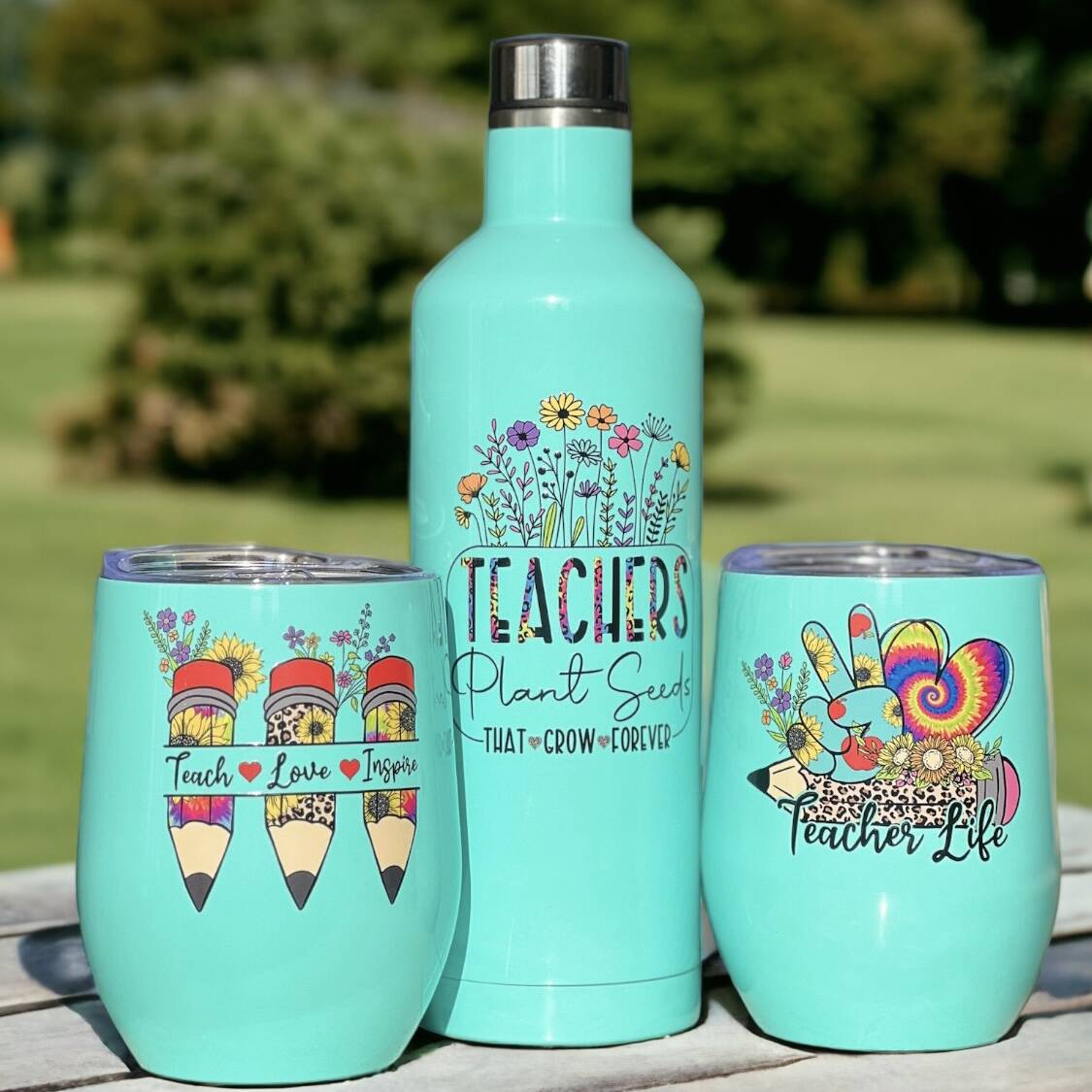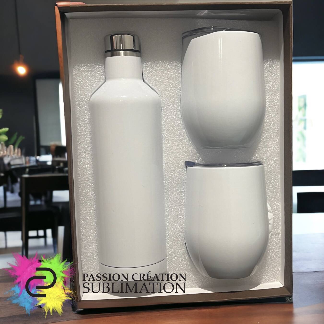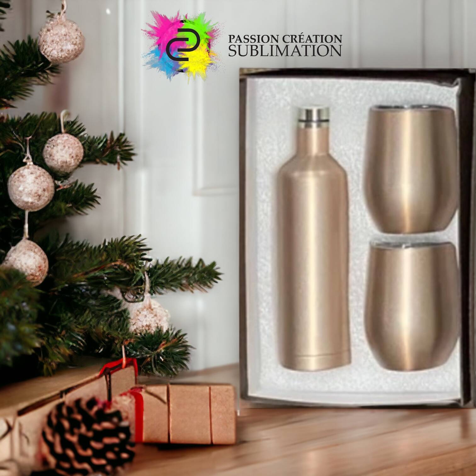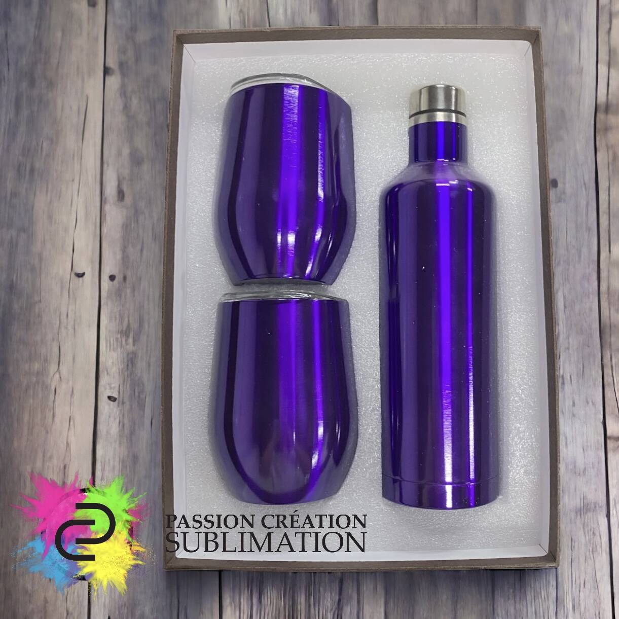 Ensemble de vin bouteille et verre à double paroi, en acier inoxydable colorés comprenant 1 bouteille 650 ml, avec 2 tumbler à vin 12oz et boîte cadeau. Pour DTF et vinyl seulement