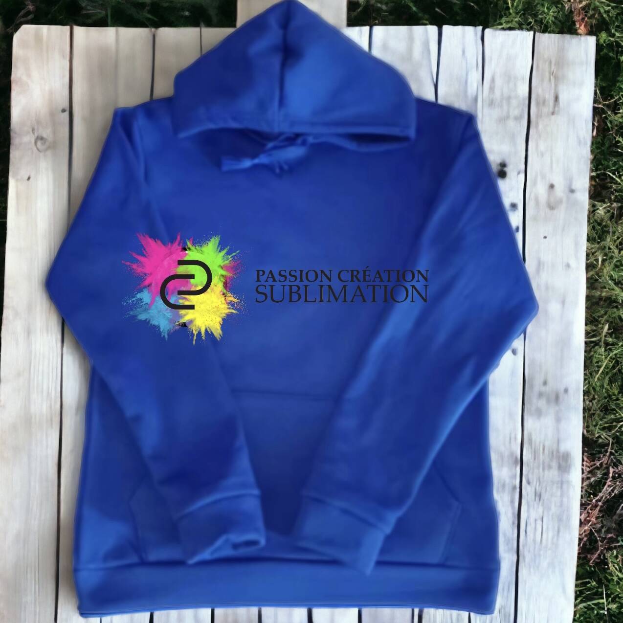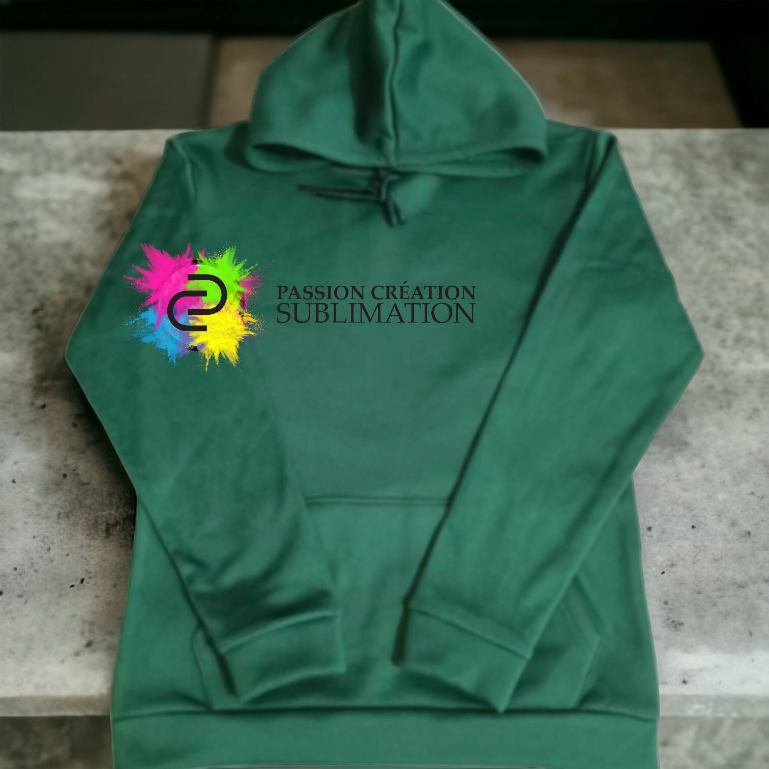 Hoodie adulte 100% polyester pour la sublimation ou vinyl et DTF. Superbe qualité de tissus, doux à l’intérieur.