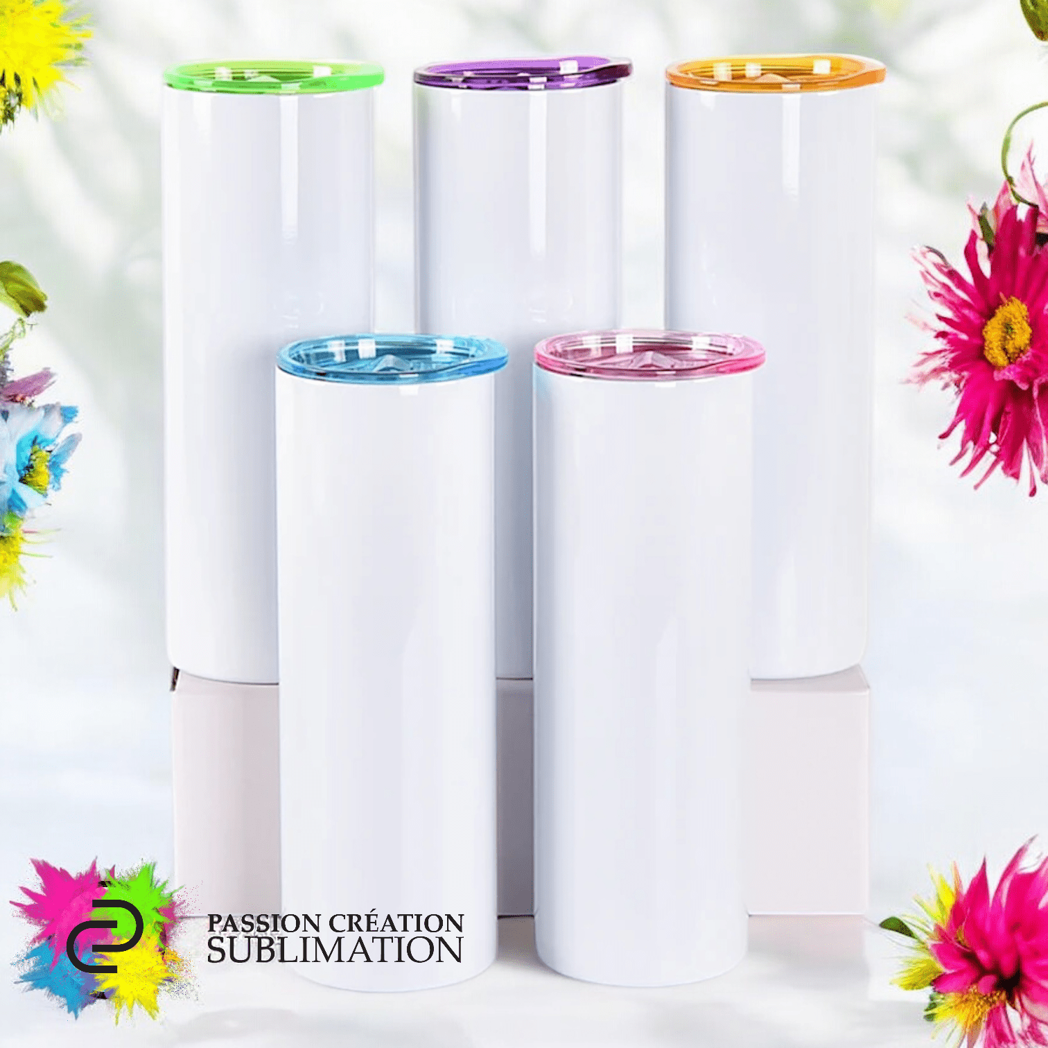 Tumbler 20oz stainless steel à double paroi avec couvercle colorés. Conçu pour la personnalisation par sublimation.