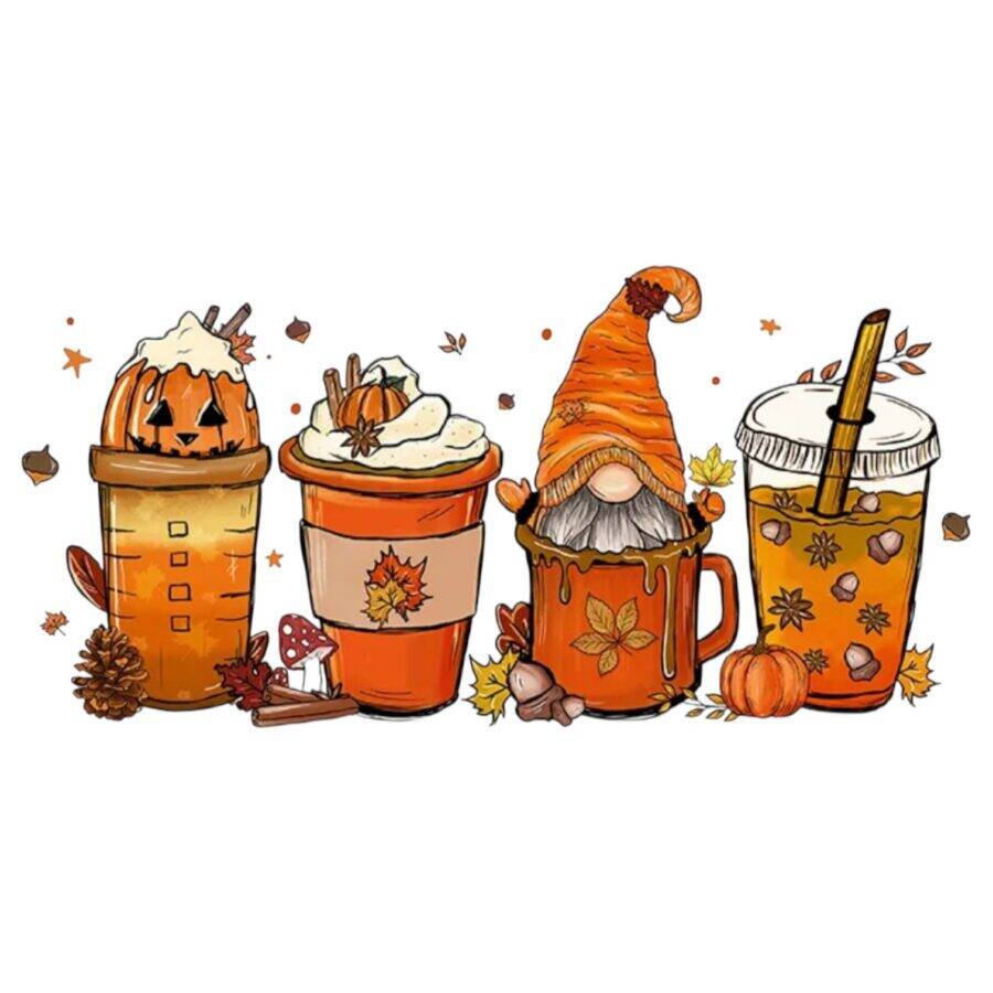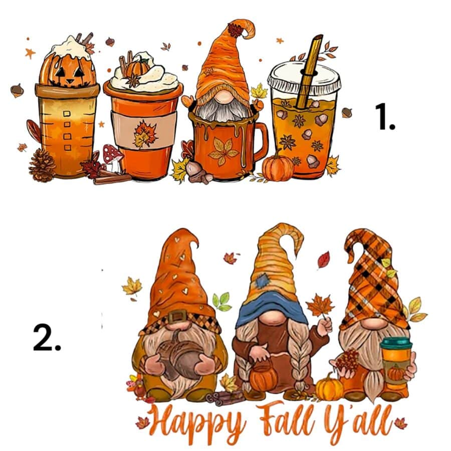 UV DTF gnome et citrouille avec thème de l’automne, avec un joli gnome conçu pour personnaliser vos items sans chaleur nécessaire, décollez doucement le UV DTF et placez-le sur l’item de votre choix. Nous vous suggérons une surface lisse et propre. Frottez le UV DTF pour vous assurer qu’il adhère bien à votre surface et retirer doucement la pellicule transparente.