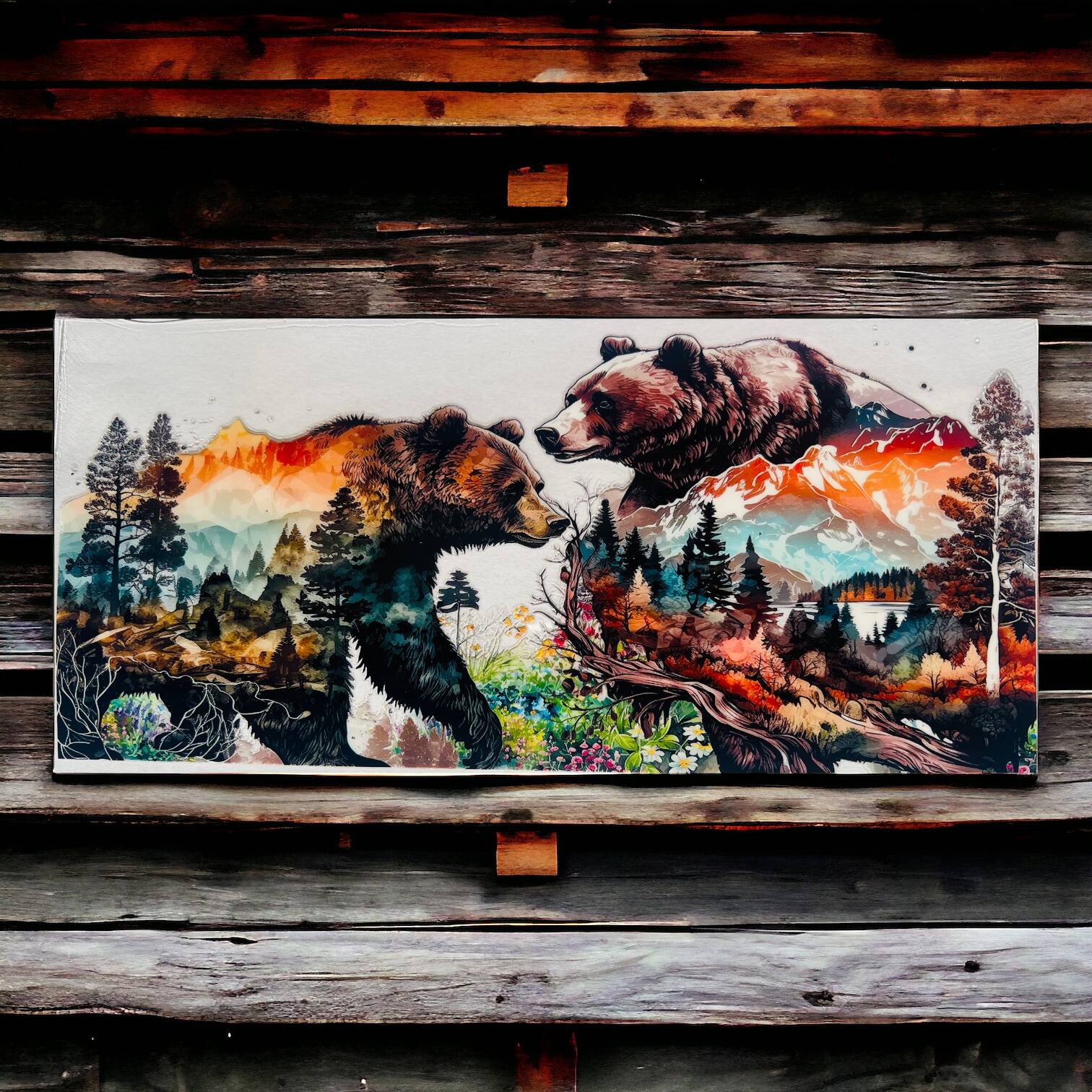 UV DTF sous le thème des ours et montagne, conçu pour verre 16oz.